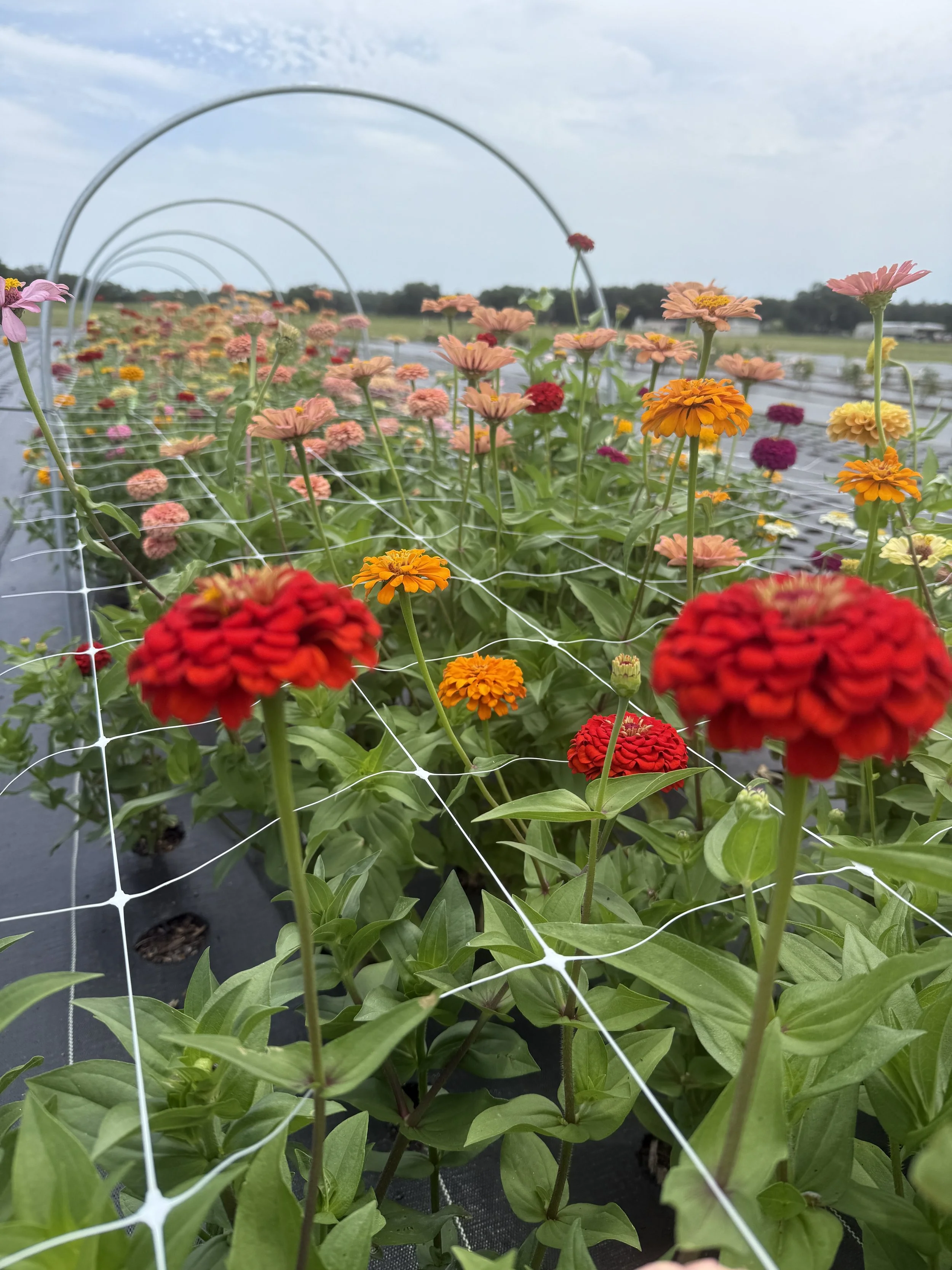 After growing flowers from our backyard for a few years, we knew we wanted something bigger! Our vision for the farm is a place where we not only get to cultivate beautiful, heat tolerant flowers, but get to immerse ourselves in the community around us. We focus on organic practices and pollinator friendly choices as much as possible.